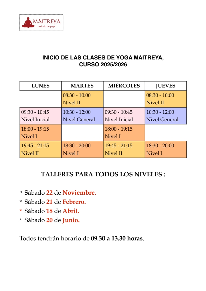 Clases yoga Granada. Estamos encantados de presentar nuestro nuevo horario con nuevos aspectos, como los fundamentos para principiantes, todas las clases de niveles I, II, III . Clases intensivas ocasionales los fines de semana. Echa un vistazo a nuestros horarios de clase, apúntate y reserva tu lugar aquí.